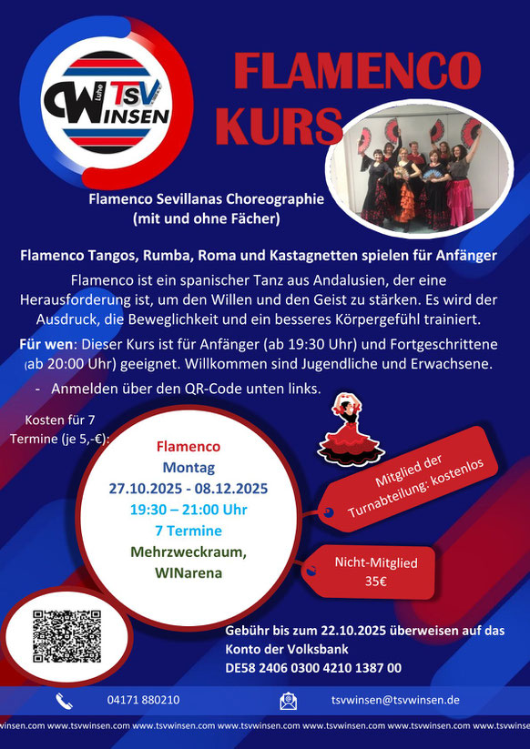 Flamenco ist ein spanischer Tanz aus Andalusien, der eine Herausforderung ist, um den Willen und den Geist zu stärken. Es wird der Ausdruck, die Beweglichkeit und ein besseres Körpergefühl trainiert.